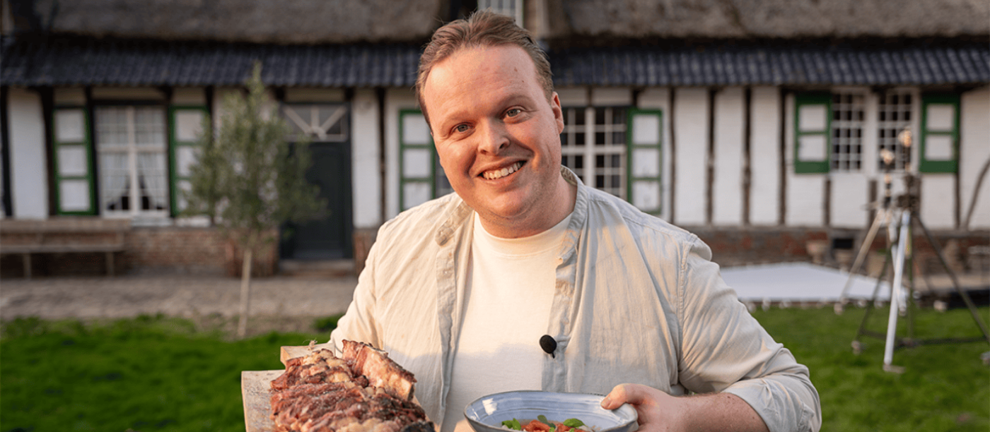 Als iemand zich een echte “vleesweter” mag noemen, dan is het sterrenchef Timon Michiels wel. In het nieuwe programma 'Meat Timon' op njam! neemt slager en vleeskenner Timon Michiels de kijker mee in een wereld waar smaak begint bij kennis, en waar respect voor het product centraal staat. Vanaf 5 april serveert hij, vier zondagen lang, geen opgeklopte televisie maar een duidelijke visie op vlees: eerlijk, technisch onderbouwd en vooral bijzonder smakelijk.