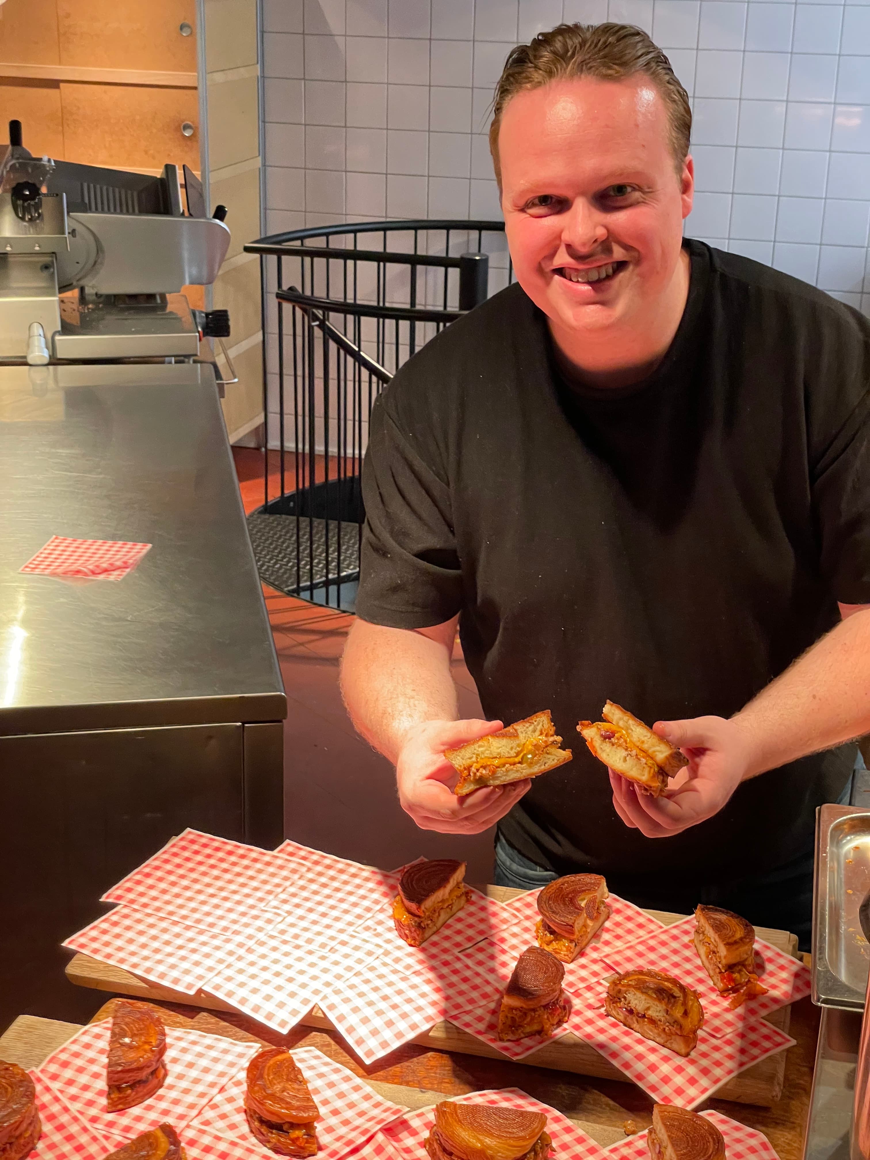 Dat levert een verrassend breed spectrum op. Denk aan dumplings van bavette (aka de love handles van de koe, dixit Timon) met kokos-tomatenjus, pulled pork taco’s of een Sloppy Joe burger met animal style fries. Comfortfood met een duidelijke signatuur, maar zonder overbodige complexiteit.