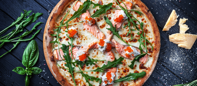 Een recept van Chef Lio Luxe pizza met gerookte zalm en rode kaviaar van Chef Lio