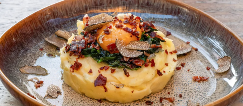 Dit pureetorentje met spinazie, spek en ei is een echte klassieker in een modern jasje. Romige aardappelpuree vormt de basis, gecombineerd met smeuïge spinazie, krokant spek en een perfect gegaard ei voor extra comfort en smaak. Chef Jeroen De Pauw van njam! geeft het vertrouwde gerecht een hedendaagse twist, ideaal voor wie houdt van pure, herkenbare smaken met finesse.
