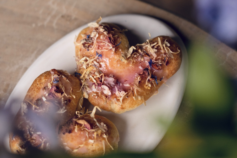 Een recept van Amelie Pede Valentijnssoesjes met karamel en roos
